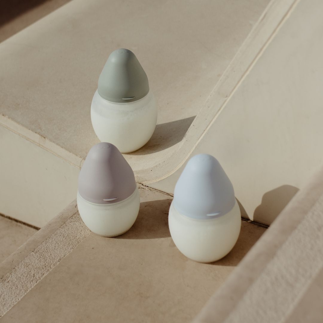 Medical-grade silicone baby bottle with a 100% safe composition, free from substances that could harm babies' health (no BPA, BPS, phthalates, etc.), and no risk of microplastic migration into the baby's milk.
