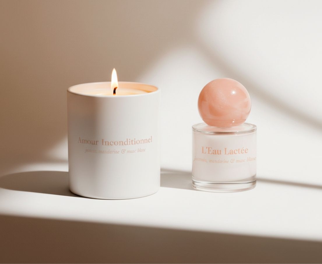 Elle s’en inspire fidèlement, avec les mêmes notes douces de mandarine, jasmin et musc blanc, pour créer une ambiance apaisante.